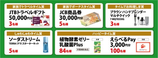 期間中に対象の購入場所で「フジタイムAQUA(R)」または「フジタイム(R)黒酢」を購入し、アンケートに答え購買証明(レシート等)の画像を「富士薬品オリジナル商品LINE公式アカウント」のキャンペーン応募専用アカウントに送信いただくと、JTBトラベルギフト5万円分や、JCB商品券3万円分などの賞品が抽選で当たります。はずれたお客様にも「植物酵素ゼリー乳酸菌」か「えらべるデジタルギフト3,000円」が当たるハッピータイム賞を用意しています。たくさんのご応募をお待ちしております。