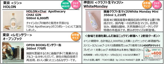 町中華・サウナに合うお酒や、ジャケ買いしたくなるお酒、アーティストコラボ酒も!場所:ニュウマン新宿 2F JR新宿駅ミライナタワー改札外/期間:2025年4月17日(木)~4月20日(日)