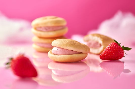 3.白いふんわりスフレ生地に、濃厚な苺チーズクリームをサンド。ほどよい酸味がある苺のハーモニー。