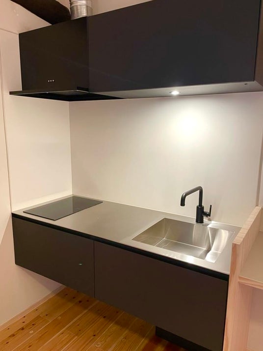 キッチンには冷蔵庫や電子レンジの他、IHコンロや電子ケトル、食器類も完備。