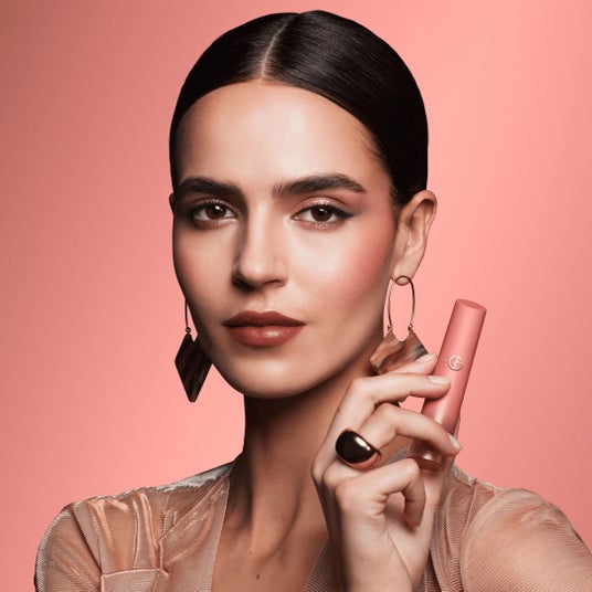 「リップ マエストロ サテン ヌード マニア コレクション 2025」は、マットでエレガントなローズブラウンが美しいパッケージデザインに、シルバーでジョルジオ・アルマーニのモノグラムがあしらわれています。
