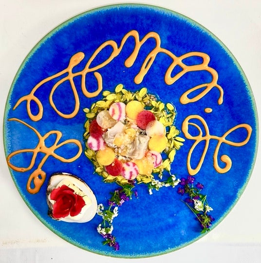 前菜 マグロのタルタルとハマグリのポッシェ菜園風