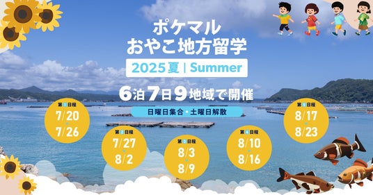 「ポケマルおやこ地方留学」2025年夏休みプログラムの申し込み受付を開始 6泊7日の全5日程で、北海道から長崎県の8道県9地域で開催