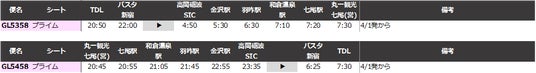 図6 関東⇔富山・石川線 4列シート「プライム」での運行便ダイヤ