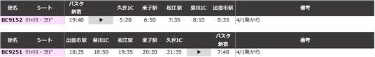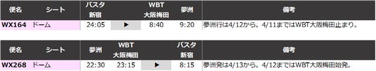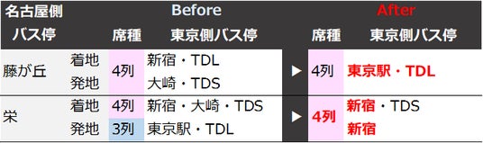 また、これまで「バスタ新宿」発および「池袋駅」着の3列シートの運行が無かったため、それぞれ3列シートの「ドーム」と「ReBorn(以下「リボーン」)」が経由するようにダイヤを変更しています(図5)。
