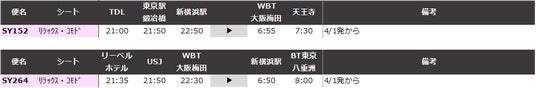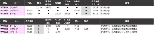 ※「TDL」は東京ディズニーランド・バスターミナル・ウエスト、「TDS」は東京ディズニーシー・バスターミナル・サウス、「WBT大阪梅田」はWILLERバスターミナル大阪梅田の略称です。