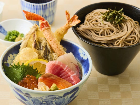 ◇海鮮(中とろ、カンパチ、サーモン、いくら)◇天ぷら(海老、ずわいがに、白身魚、帆立、穴子)