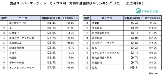 ~ドラッグストア、食品スーパーマーケット 対前年伸び率TOP20カテゴリを発表【 2025年2月 】~