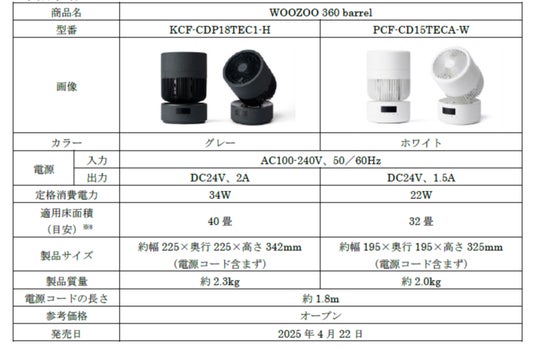 当社初となる左右360°送風を実現!「WOOZOO 360 barrel(ウーズー サンロクマル バレル)」新発売