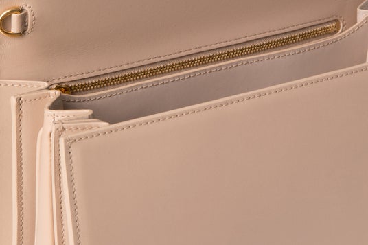 アクリスの頭文字 “A”をかたどる、シグネチャーのトラペゾイド(台形)のバックルがアクセントに。ストラップは長さを調節でき、取り外しも可能です。内部には3つのコンパートメントが並び、すっきりとした収納が可能。最高級のイタリアンカーフレザーを使用し、熟練の職人が一つ一つ手作業で仕上げています。シンプルながら構築的なピュアなラインが、モダンな伝統を体現しています。