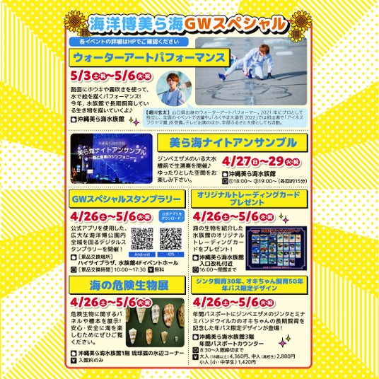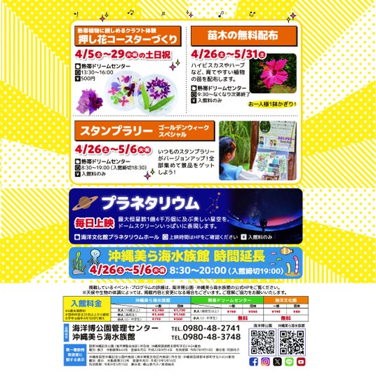 ~海洋博公園の沖縄美ら海水族館・熱帯ドリームセンター・おきなわ郷土村・オキちゃん劇場でのイベント情報等を掲載しております。~