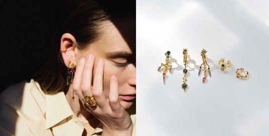 クレタ島に伝わる、ギリシャ神話を象徴するような、イルカや魚、太陽や花などのモチーフをあしらい、ミノア文明の平和で豊かな世界を映し出すような艶やかなジュエリーコレクション。こちらはシャンデリアピアス、イヤリング、イヤーカフのラインナップ。