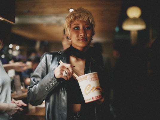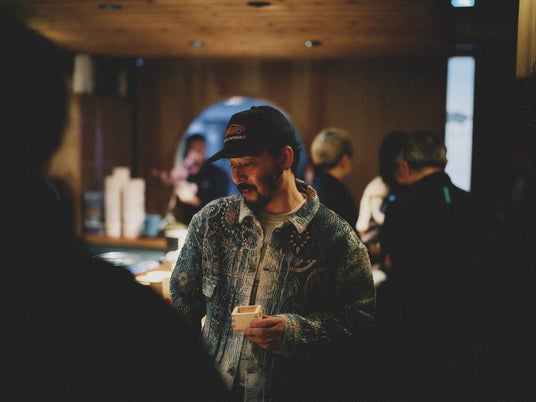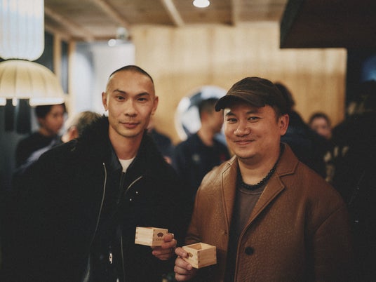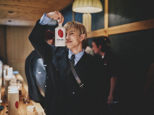 会場では、「AMBUSH(R)」のYOON氏がデザインしたモダンなボトルが印象的な「SŌMATŌ」が提供され、ゲストたちはそのフローラルな香りと繊細な味わいを堪能しました。1885年創業の老舗・高橋酒造が手掛けるこの日本酒は、秋田県の名水「笑顔清水」と日本最高峰の酒米「山田錦」、さらに吉野桜から採取された希少な「桜酵母」によって生み出された華やかな風味の純米大吟醸です。