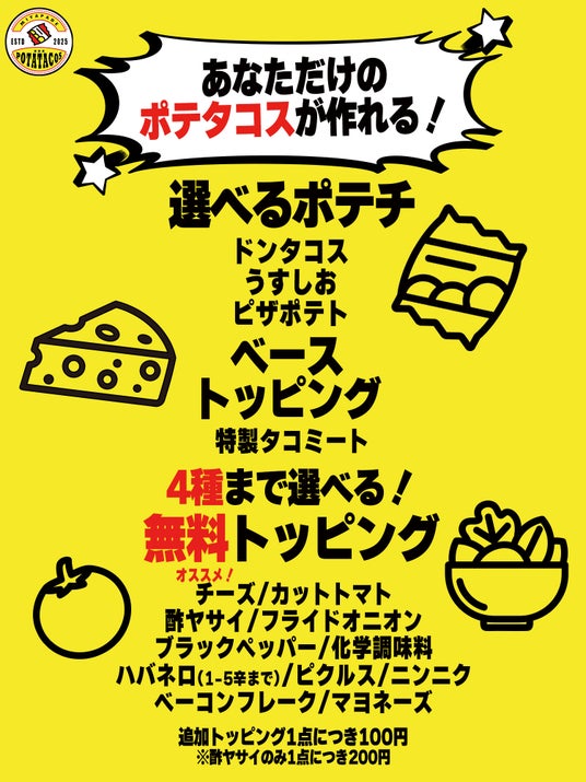 ポテチの食感と特製タコミート、自由なトッピングで完成する“自分だけのジャンクグルメ”は、今までにないフードエンタメ体験です。