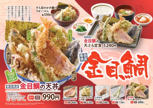 サトフードサービス株式会社(本社・大阪府大阪市、代表取締役社長・杉本 貴之)が運営する「天丼・天ぷら本舗 さん天」では、2025年4月3日(木)より「【青森県産】金目鯛フェア」を開始します。旬の高級食材で、上質でふっくらとした青森県産の金目鯛の旨みを、熱々の天ぷらでお楽しみください。