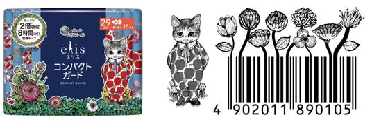 「エリス コンパクトガード ヒグチユウコ コラボデザイン」第2弾では、全7種類のうち、5種類※2はヒグチユウコさんが作品の中でも特に人気の高いネコのイラストを「エリス」のために描き下ろした特別デザインとなっています。「エリス コンパクトガード」のコンセプトである”魅せるデザインで生理中の気分を上げる”のイメージに合うように、ヴィヴィッドなタッチで描かれたイラストを外装・個包装に採用。サイズごとに異なる7種のデザインが、憂鬱になりがちな生理中の気分を高めます。外装パッケージは、パッケージを複数並べると地続きのデザインになり、思わず全種類集めて並べたくなるようなデザインに。バーコード部分までイラストを施し、細部までこだわってヒグチユウコさんの世界観を演出しました。「エリス」でしか見られないネコのイラストをぜひご覧ください。