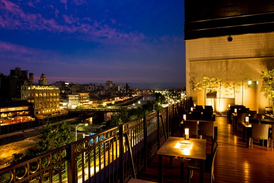 天壇祇園本店屋上(鴨川スカイBBQガーデン)の景色。鴨川を一望できます。