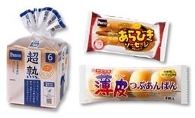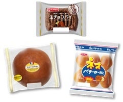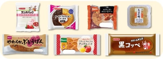 「ヤマザキ ランチパック いちごホイップ」「パスコ やわらかぶどうぱん」「パスコ ごろっとりんごのアップルパイ」「フジパン 黒コッペ」「ヤマザキ オールドファッションドーナツ チョコ」「あわしま堂 あべかわ餅」「パスコ フロランタンみたいなケーキ」等