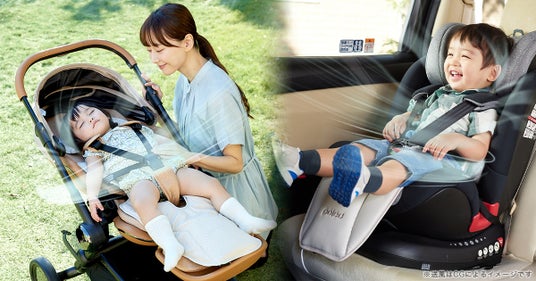輻射熱で高温になりやすいベビーカーや、熱がこもりやすい車内のチャイルドシートに取り付けて使用できる送風機付きのクールシートです。シート全体から優しい風を排出することで赤ちゃんのお肌をサラサラ快適に保ちます。