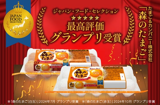 一般社団法人フードアナリスト協会主催のジャパン・フード・セレクションにて「森のたまご」白玉、 赤玉がそれぞれ初エントリーで最高評価グランプリを受賞いたしました。