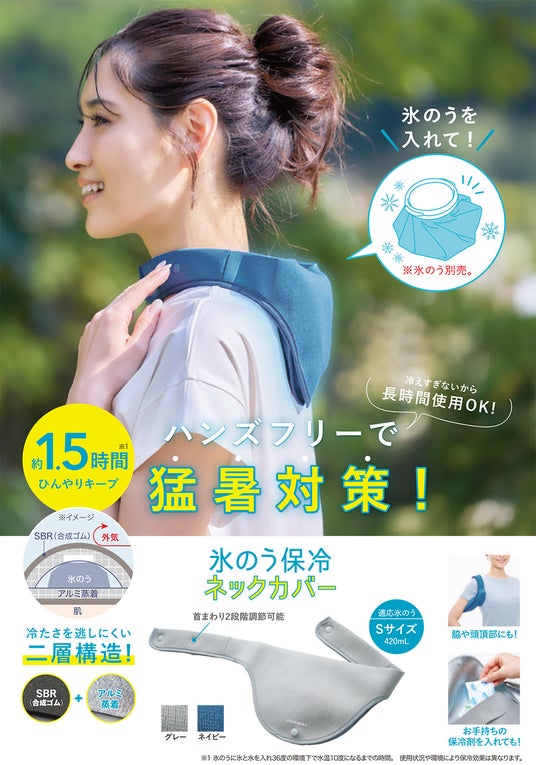 お手持ちの氷のうを入れてハンズフリーで猛暑対策!「氷のう保冷ネックカバー」を4月1日より発売
