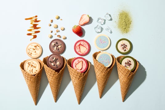 ワッフルコーンをイメージしたクランチ入りチョコの食感と5種のフレーバーでアイスクリームを表現しました。