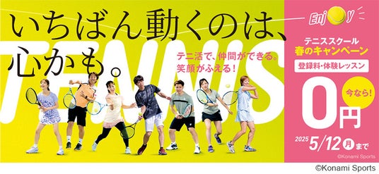 コナミスポーツ株式会社が運営するコナミスポーツクラブで展開している大人向けスクールでは、2025年4月1日(火)から5月12日(月)まで、体験レッスン(税込1,100円)と入会時の登録料(税込5,500円)が無料になる春のキャンペーンを実施します。