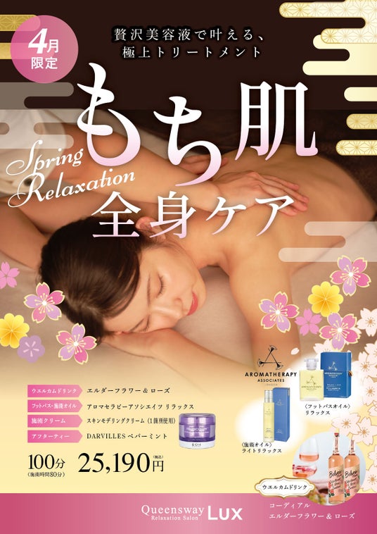 株式会社BEST HERBS(代表取締役社長 塚田 正之:東京都新宿区市谷仲之町3-5)が運営するQueenswayLUX(https://www.queensway-group.jp/qw-lux_lp.html)が2025年4月限定の春にぴったりなコースを提供します。