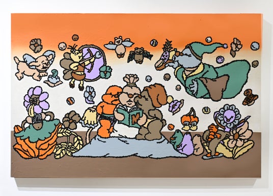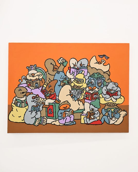 本展では、本を読んだり歌ったり、思い思いに楽しむキャラクターの姿を通して、混沌とした時代における自身の生活の豊かさとは何かを問います。
