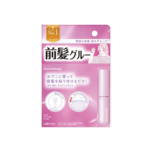 使用方法 :前髪をとめたい部分(肌)にグルーを塗布し、乾ききる前に前髪と肌を接着してください。