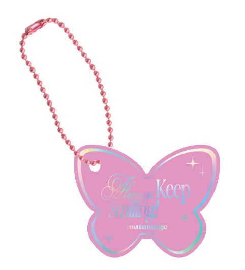 ピールオフ広告実施日は、ミラーキーホルダーをポスターからはがして、おひとり様につき1個までお持ち帰りいただけます。このミラーキーホルダーは、新ビジュアルのテーマである「蝶」をモチーフにしたデザインとなっています。