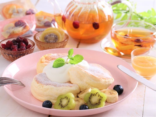 ふわふわの食感が魅力のスフレパンケーキ。お店のように仕上げるコツをお伝えします。焼きたてならではの美味しさをぜひ味わってください。ドライフルーツティーは、数種類のドライフルーツをたっぷりと使って風味豊かな味わいに。1杯分ずつラッピングして持ち帰り、ご自宅でのリラックスタイムにお楽しみいただけます。