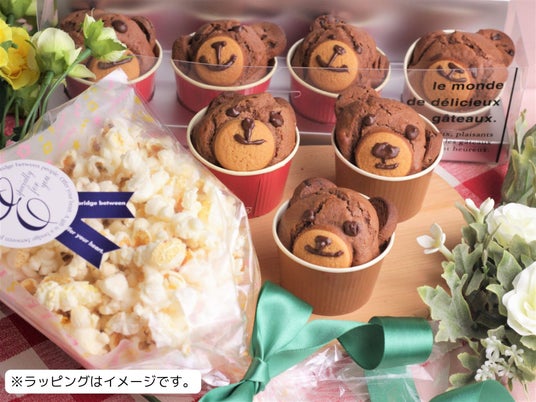 「ありがとう」の気持ちを込めて、くまちゃんのマフィンとポップコーンを作ります。クッキーやチョコを使ってお顔を描けば、かわいらしいマフィンの出来上がり。ポップコーンは花束のようなラッピングにするのでプレゼントにもピッタリです。