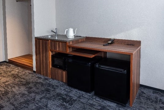 また、客室には全室に電子レンジ・冷凍庫を導入。さらにツインルーム数を増加し、2 名で利用されるお客様によりゆったりお寛ぎいただける客室となりました。