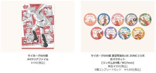 サイボーグ009展A4クリアファイル¥440(税込)サイボーグ009展 展望喫茶BLUE ZONEコラボ缶マグネット(ランダム全9種/Φ57mm)単品¥550(税込)9種コンプリートセット ¥4,950(税込)