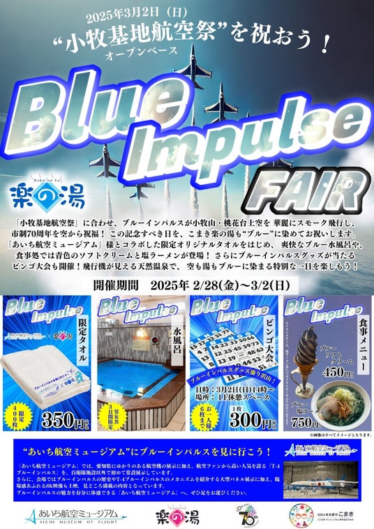 さらに、先日開催した「ブルーインパルスフェア」も大いに盛り上がりました。このイベントは、小牧基地のオープンベースで行われたブルーインパルス飛行を記念して開催したもので、航空をテーマにした特別メニューや限定グッズを提供。小牧市ならではの魅力を多くの来館者に楽しんでいただき、地域の魅力を広く発信するきっかけとなりました。
