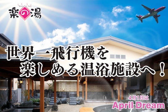 この度のエイプリルドリームとして、私たちの目指す姿は、こまき楽の湯を「世界一飛行機を楽しめる温浴施設にすること」です。