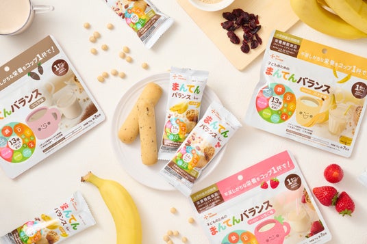 2023年1月に発売した『子どものためのまんてんバランス〈ココア味〉』は、自社EC・Amazon・楽天市場に加え、全国のベビー専門店・スーパーマーケット・ドラッグストアなど1,000店舗以上で展開され、累計販売数は80万食を突破。2025年3月には新たに〈いちご味〉〈バナナ味〉が加わり、ラインアップがさらに広がりました。