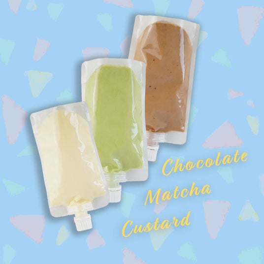 しっとりふんわり柔らかな生地の中に、抹茶クリームを入れました。鮮やかなグリーンのコーティングに金粉をふりかけた上品な見た目と、上質な抹茶の風味が感じられる、エメラルドのような見た目も華やかなミニくりーむパンです。