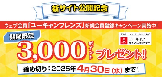 2025年4月1日(火)から4月30日(水)までにウェブサイトから新規登録された方全員に、公式サイトでのお買い物に利用できる3,000ポイント(3,000円相当分)を進呈いたします。