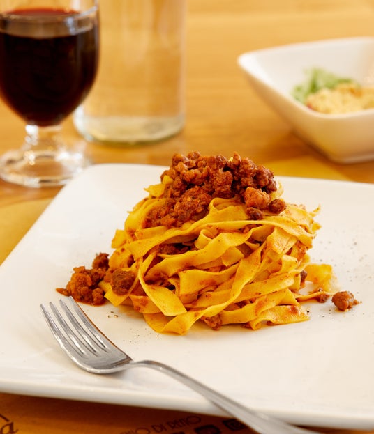 フレッシュなタリアテッレにじっくり煮込んだ牛のラグー(ミートソース)とパルメザンチーズを絡めた、クラシックな一品。家庭的な温かみのある味で人気です。