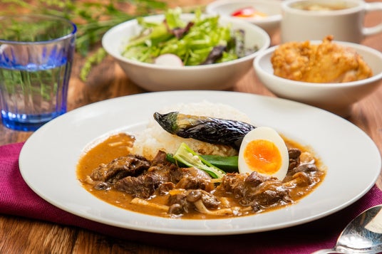 毎月シーズナルな料理を提供するランチマンスリーメニュー。4月は6種のスパイスとラム肉をつかった『スパイスラムカレーとタンドリーチキン』が登場。低カロリー、高たんぱくで知られるラム肉を6種のスパイスとトマトスープでじっくり煮込み、焼きなすやオクラ、きのこ、卵を添えて仕上げたヘルシーなカレーです。副菜にはタンドリーチキンをご用意しました。罪悪感なく味わえる4月限定ランチをぜひご賞味ください。