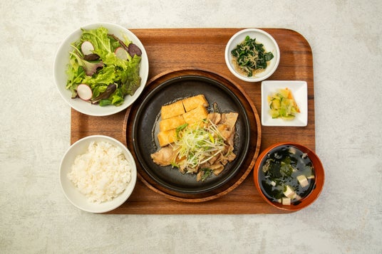 ・味噌豚と栃尾揚げの鉄板焼き(サラダ/お新香/ほうれん草おひたし/味噌汁)