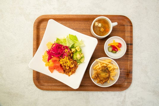 ・たっぷりお野菜の混ぜご飯~ブリトーボウル~(スパイシーポテト/自家製ピクルス/フライドチキン/コンソメ)