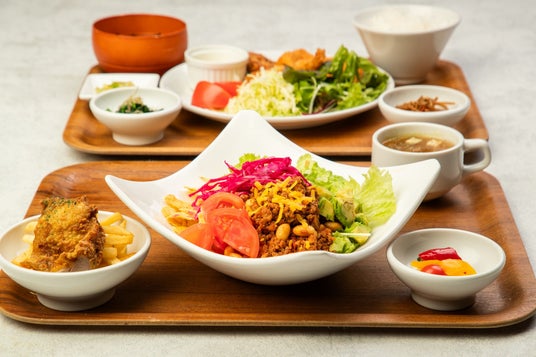 4月1日からは、人気の「一汁三菜 日替わり定食」が一新いたします。「エスニック風照り焼きチキン」「味噌豚と栃尾揚げの鉄板焼き」「鰆の南蛮漬けと鶏のから揚げ」「たっぷりお野菜の混ぜご飯~ブリトーボウル~」「4種のミックスフライ定食」「四川風エビチリと蒸し鶏のバンバンジー」など6種をご用意。バラエティ豊かなラインナップで、毎日違った味わいをお楽しみいただけます。
