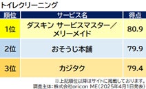 「トイレクリーニング」部門では、【ダスキン サービスマスター/メリーメイド】が2度目※の1位となりました。(※2019、2025年)