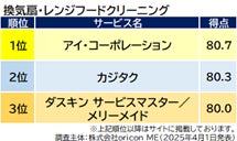 換気扇・レンジフードクリーニングランキング(オリコン顧客満足度)
