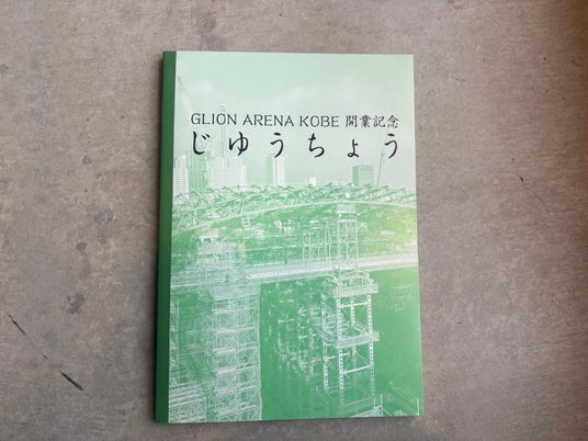 神戸っ子の愛用品ノートがTOTTEI仕様になりました。表紙にはGLION ARENA KOBEの建設中の写真を使用し、開業までの軌跡や神戸ストークスの歴史が詰まった特別仕様となっています。