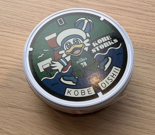 ポートタワーや海洋博物館が描かれたデザインで、神戸ストークスのマスコット「ストーキー」が瓦せんべいを手に持つ特別デザイン。8枚入りと16枚入りをご用意し、個包装のためお土産にも最適です。