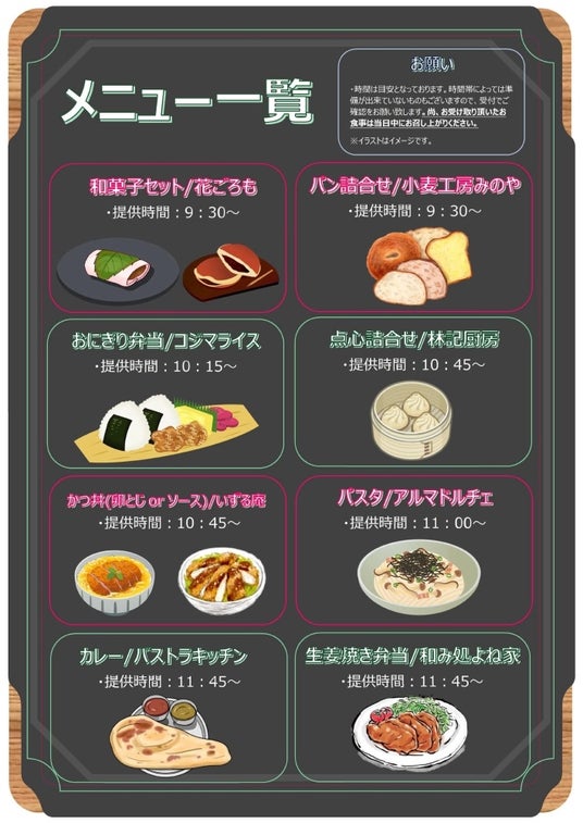 いずれも地域の商店街などにある飲食店のご協力のもと、人気のラインナップを揃えています。